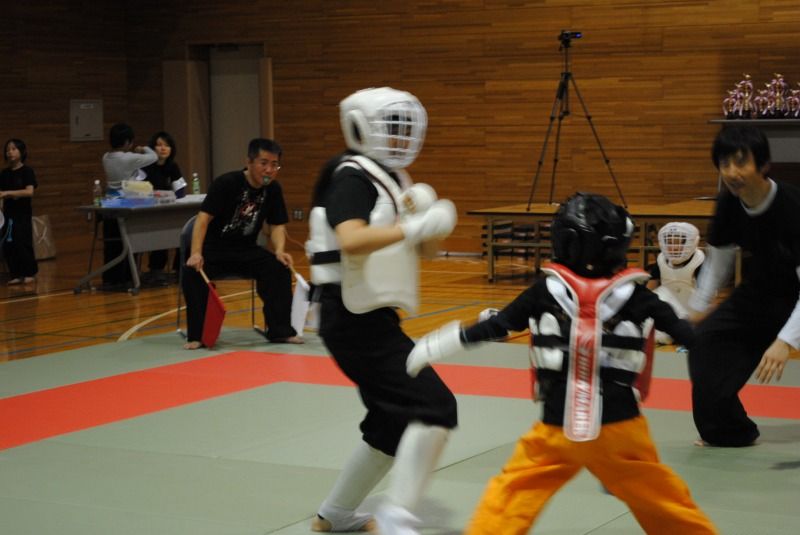 プロのような試合形式から、ヘッドギアや防具を装着した